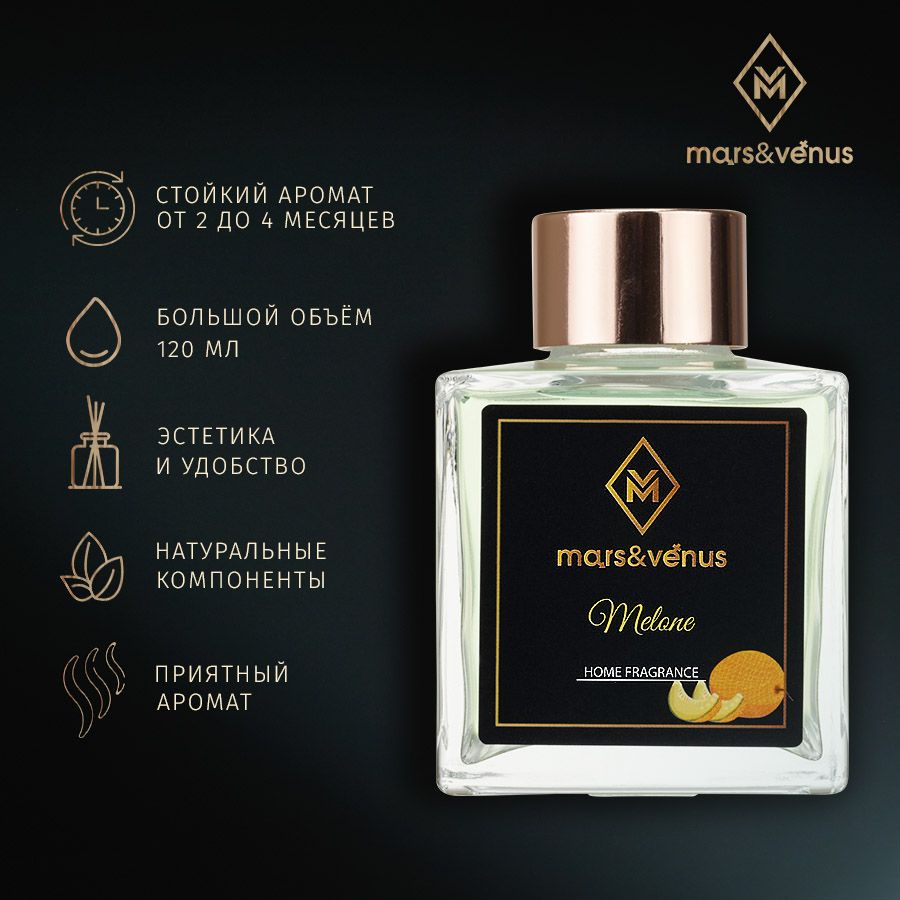 Любите жаркое лето и его сладкие ароматы? Наш интерьерный диффузор Melone Mars&Venus с ароматом спелой и сочной дыни поможет Вам окунуться в эту вдохновляющую атмосферу солнечного настроения в любое время года.