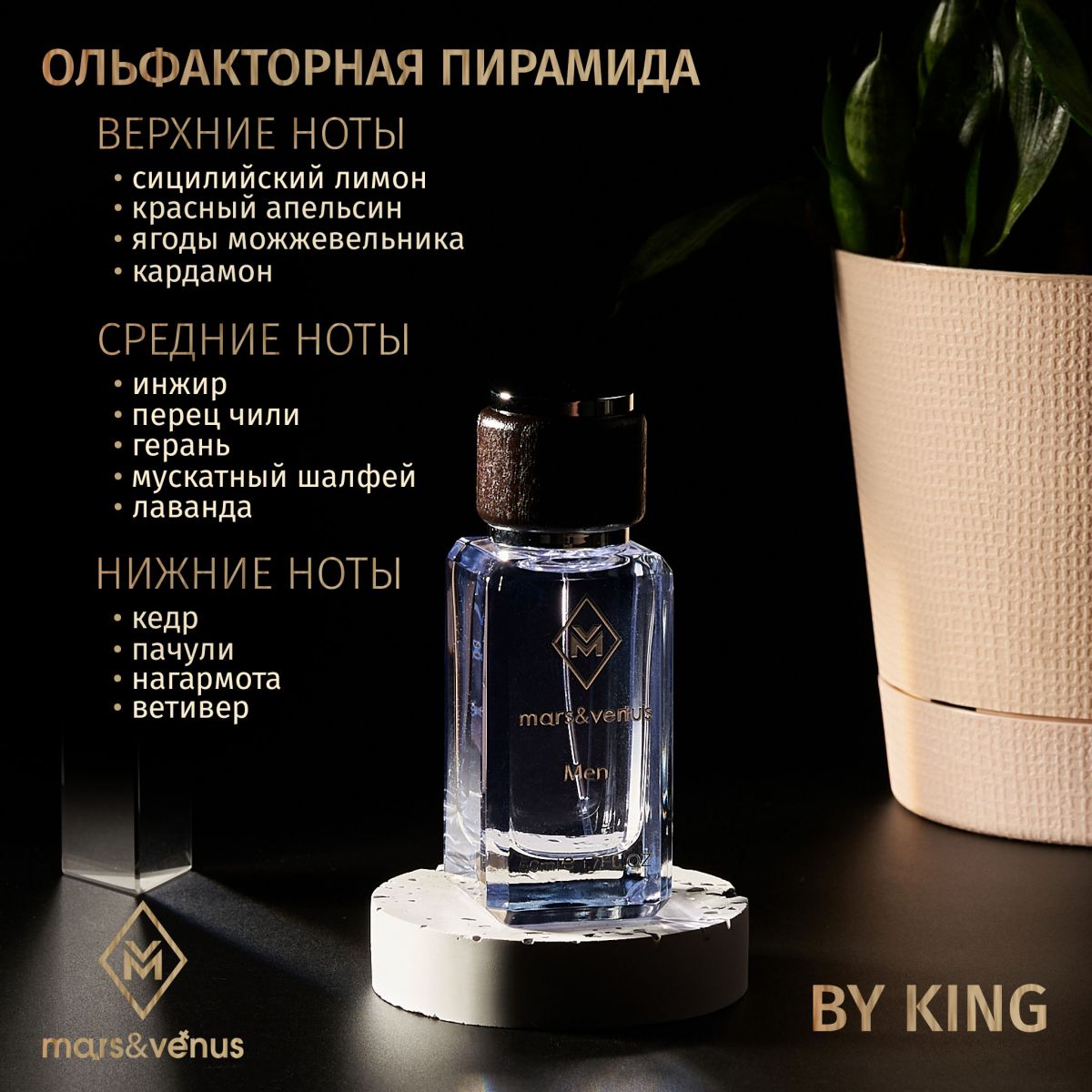 Парфюмерная вода M 208 Mars-Venus By King предназначена для тех, кто уважительно относится к традициям, но всегда открыт новым перспективам и волнующим впечатлениям. В каждой капле этого парфюма звучит история стиля, утонченности и неповторимости.
