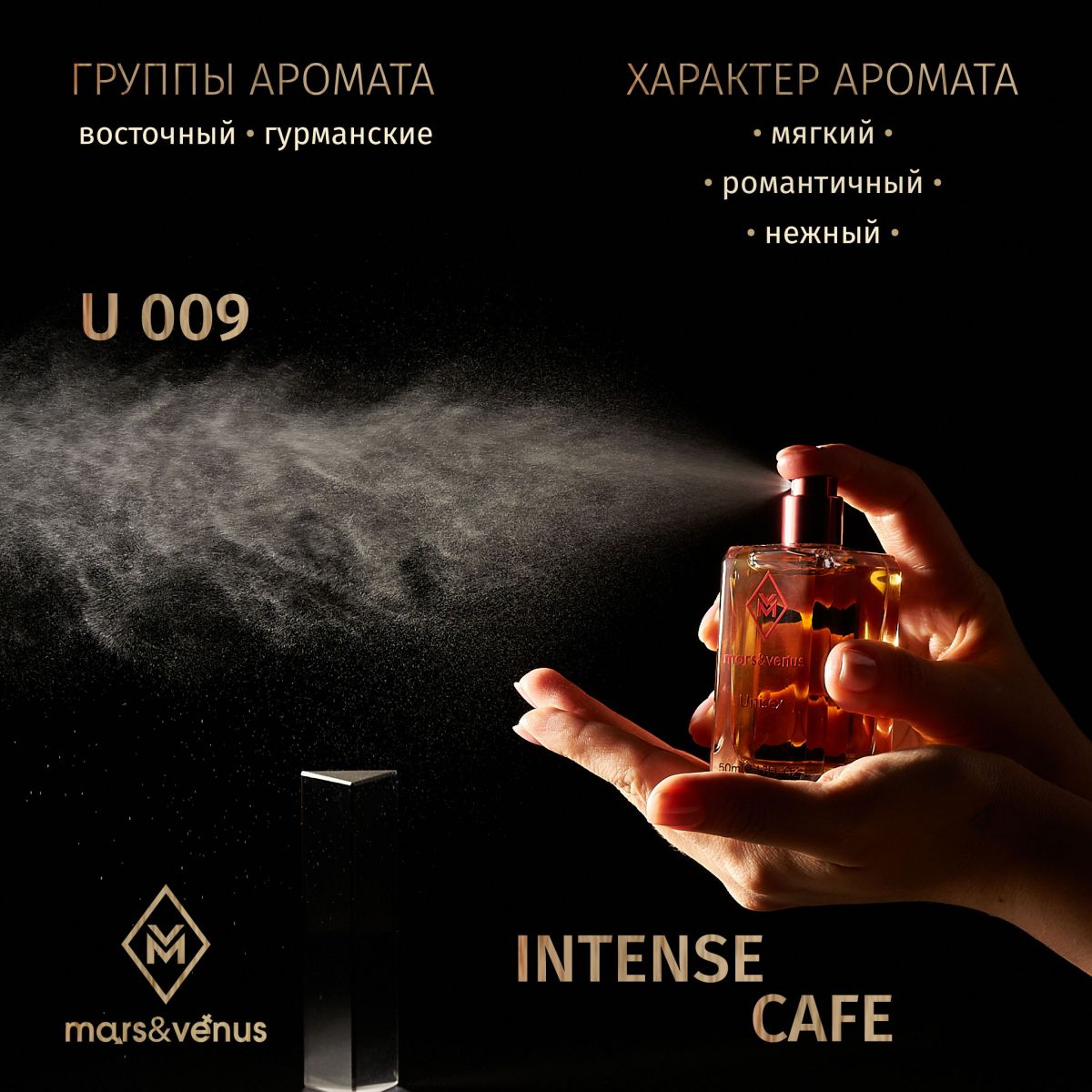 Чувственный, уютный, элегантно-сладкий аромат, который очаровывает с первого мгновения. Парфюмированная вода Mars-Venus U 009 Intense Cafe – поистине захватывающий и манящий гурманский аромат с ярко выраженными нотами свежесваренного кофе с оттенками розы и сливочной базой из ванили и белого мускуса.